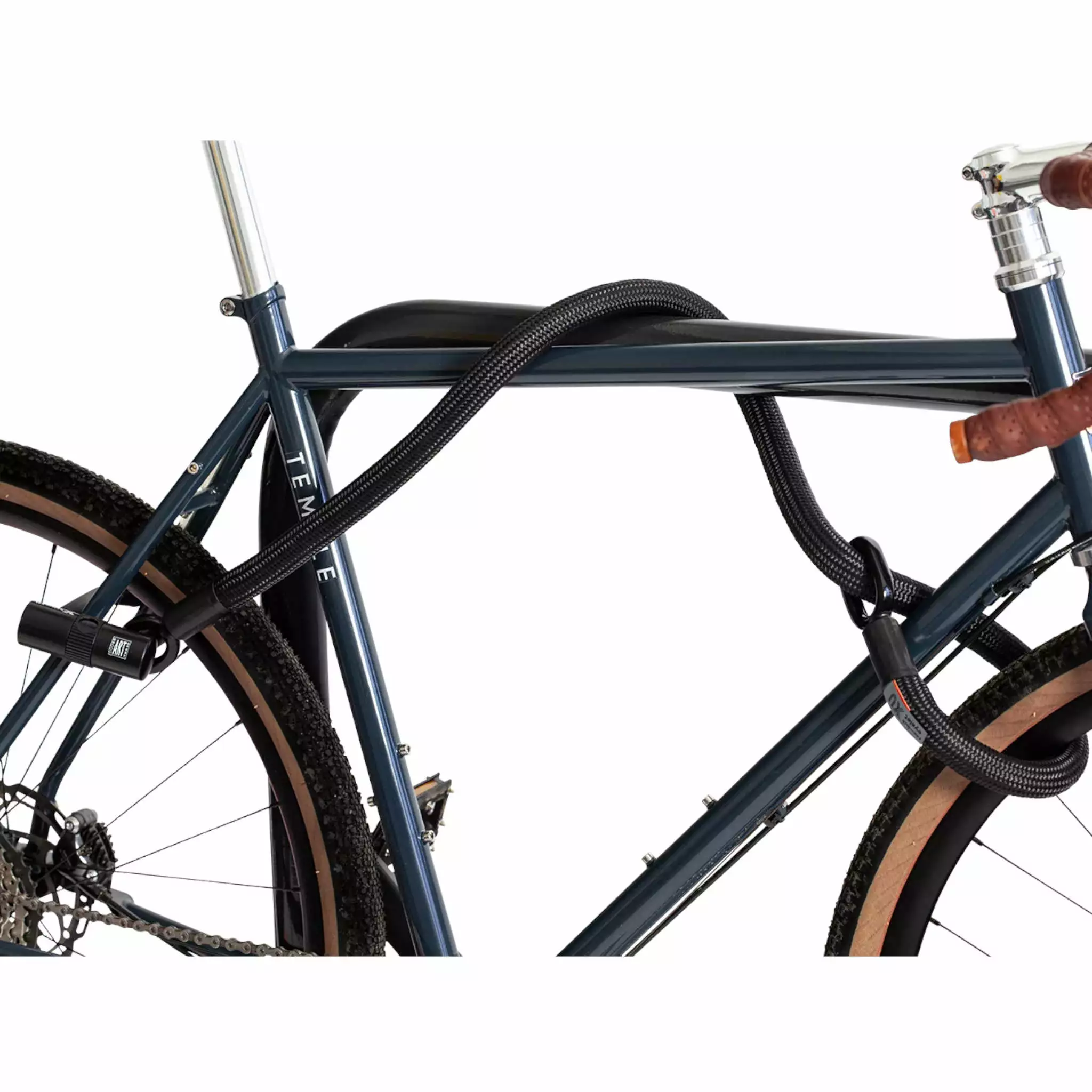 Ce câble antivol Tex-lock est fourni avec un U afin de solidariser les deux boucles du câble ou de pouvoir attacher votre vélo à un point fixe. L’anse de l’antivol fait une longueur de 14 cm et offre la possibilité d’attacher la roue avant et le cadre au mobilier urbain tout en faisant passer les 2 boucles dans l’anse de l’antivol. Ainsi, vous sécurisez de nombreux éléments du vélo.