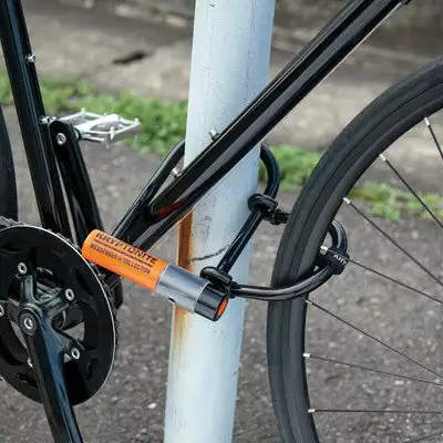 Grâce à son système à double anse l’antivol se glisse facilement dans la roue avant et autour du cadre pour se fixer ensuite au point fixe. De plus il bénéficie du design Bent Foot, une extrémité d’anse courbée, pour une grande résistance face aux attaques à la masse. De plus avec cette conception l’installation de l’antivol est simple et pratique.