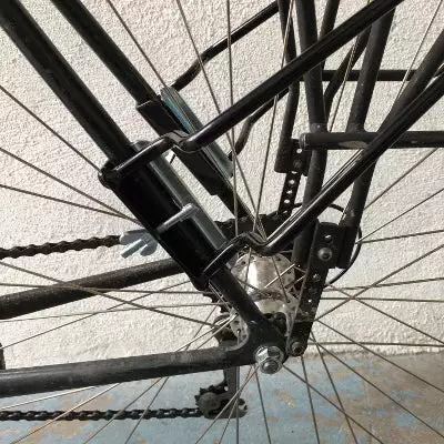 Vous pouvez utiliser cette fixation avec un porte bagages installé à l’arrière du vélo sans que la fixation ne soit gênée par le support à bagage.