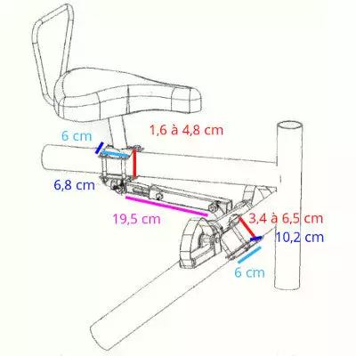 Ce siège selle se monte sur la barre horizontale du cadre de vélo. Il est ainsi adapté pour le vélo dit « pour homme », c’est-à-dire avec le top tube droit et horizontal, de 16 à 48 mm de diamètre. Ce dispositif convient aux cadres ayant un tube inférieur rond et large dont le diamètre est compris entre 34 et 65 mm. Consultez la notice d’installation de la selle sur cadre pour plus d’informations.