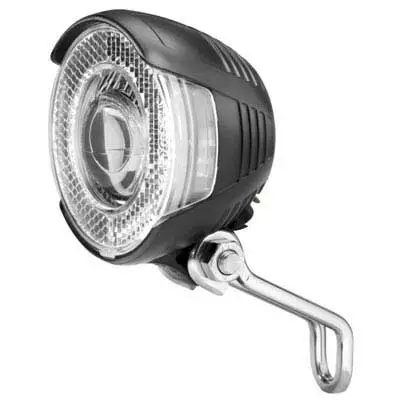 Son réflecteur et son design basé sur le plastique transparent font de lui le must en matière d’éclairage de la chaussée pour les vélos avec dynamo. Ce phare possède un niveau de luminosité de plus de 10 lux. L’installation du feu est simple et compatible avec une grande majorité de vélos, il se fixe sur la fourche du vélo à l’aide d’une vis pour éclairage de vélo non fournie.