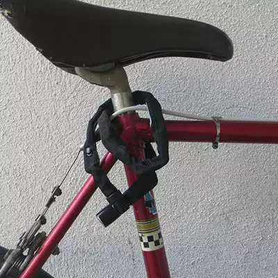 C’est une chaîne simple à utiliser et facile à transporter : on l’accroche tout simplement autour de la selle. Son poids est de 140 grammes. Le système se verrouille d’un simple claquement, sans utiliser la clé. Un double de la clé est fourni.