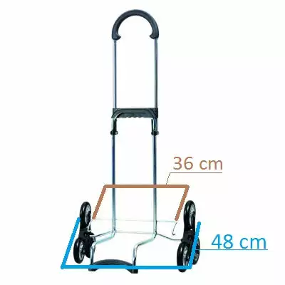 Le châssis Scala Andersen en aluminium à trois roues est surnommé le Maitre des escaliers. Grâce à ses trois roues articulées, il vous permet de monter les escaliers et de passer tous les obstacles de la route avec votre panier à provision sans le moindre effort.