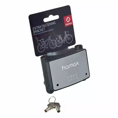 Cette fixation Hamax est faite pour installer un siège enfant de la marque Hamax. La particularité de ce modèle, par rapport à la fixation sur tube de selle Hamax fournie avec les sièges, est que celle ci se verrouille par une clé. Il devient donc impossible d’enlever le siège du vélo sans posséder la clé de la fixation. Cette fixation est fournie avec deux clés.