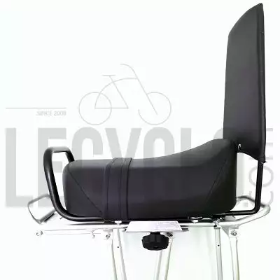 Le siège junior est idéal pour transporter un enfant de plus de 5 ans, devenu trop grand pour voyager sur les sièges enfant classiques. Il est équipé d’un dossier pour plus de confort et de sécurité. La poignée à l’avant permet de se maintenir durant le trajet. Il se fixe sur le porte bagage dont les rails sont écartés de 11 à 15,7 cm à l’aide d’une vis de serrage et de mâchoires.