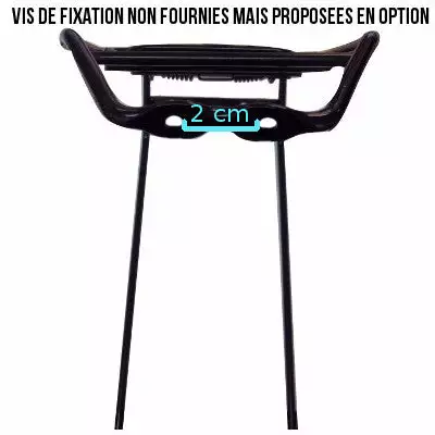 La fixation du porte bagage se fait sur les trous de votre cadre au dessus de l’axe de la roue arrière et au niveau de la patte qui relie les deux haubans. Si vos trous de fixation sont sur les côtés des haubans, une plaque de fixation pour porte-bagages vous permet de déporter la fixation.