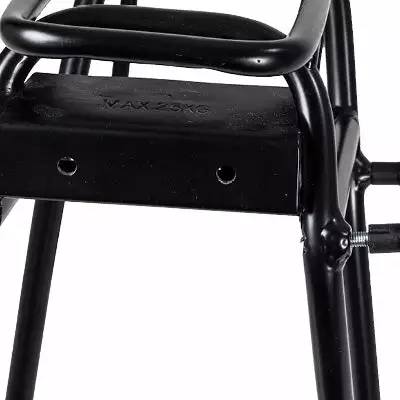 La plateforme de 35×12 cm vous permet d’augmenter votre capacité de chargement en y fixant un panier ou une caisse arrière, un un top case fixe ou amovible ou un siège enfant arrière en même temps que des sacoches arrière. Attention toutefois à respecter le poids du chargement autorisé sur ce porte bagages.