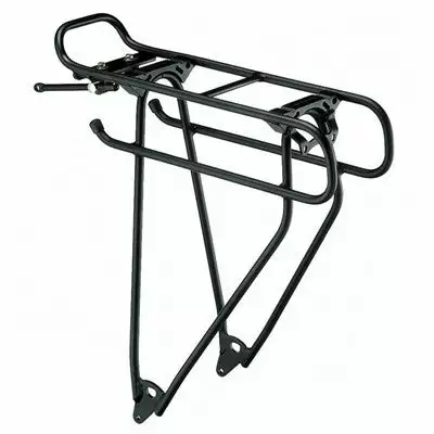 Le porte bagages pèse 773 grammes et dispose de tubes de 10 mm de diamètre. Il est fabriqué en aluminium, couleur noire avec pince à ressort en acier inoxydable.