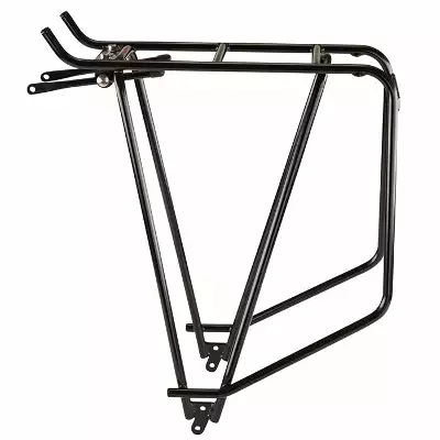 L’enseigne Tubus est spécialisée dans la fabrication de porte-bagages de vélo depuis plus de 20 ans. Tubus est d’ailleurs particulièrement pointilleux sur les tests de résistance de ses produits. Pour son modèle Cargo, la marque opte pour l’acier, un matériau garantissant une grande robustesse. L’acier est un choix judicieux si l’on envisage de parcourir un certain nombre de kilomètres. De coloris noir, le porte-bagages Cargo possède des tubes de 10 mm de diamètre pouvant transporter une capacité exceptionnelle de 40 kg testés par Tubus, pour le transport d’affaires et de matériel, pour une pratique de cyclotourisme. (Charge légale de 26 kilos max, voir détails en fin de description*).