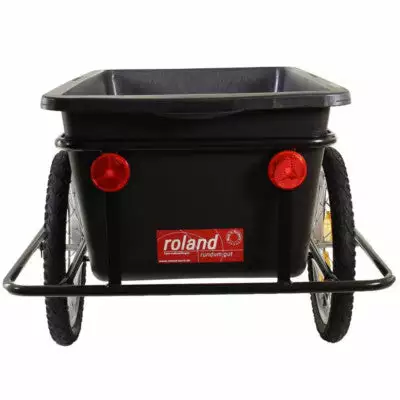 Avec un châssis solide et un bac en plastique rigide et amovible, la remorque de vélo Roland Big Boy permet de transporter 90 litres d’affaires, de courses et autres matériels pesant jusqu’à 40 kg à l’arrière du vélo. Le transport à pied est également possible, avec une capacité de charge de 90 kg.