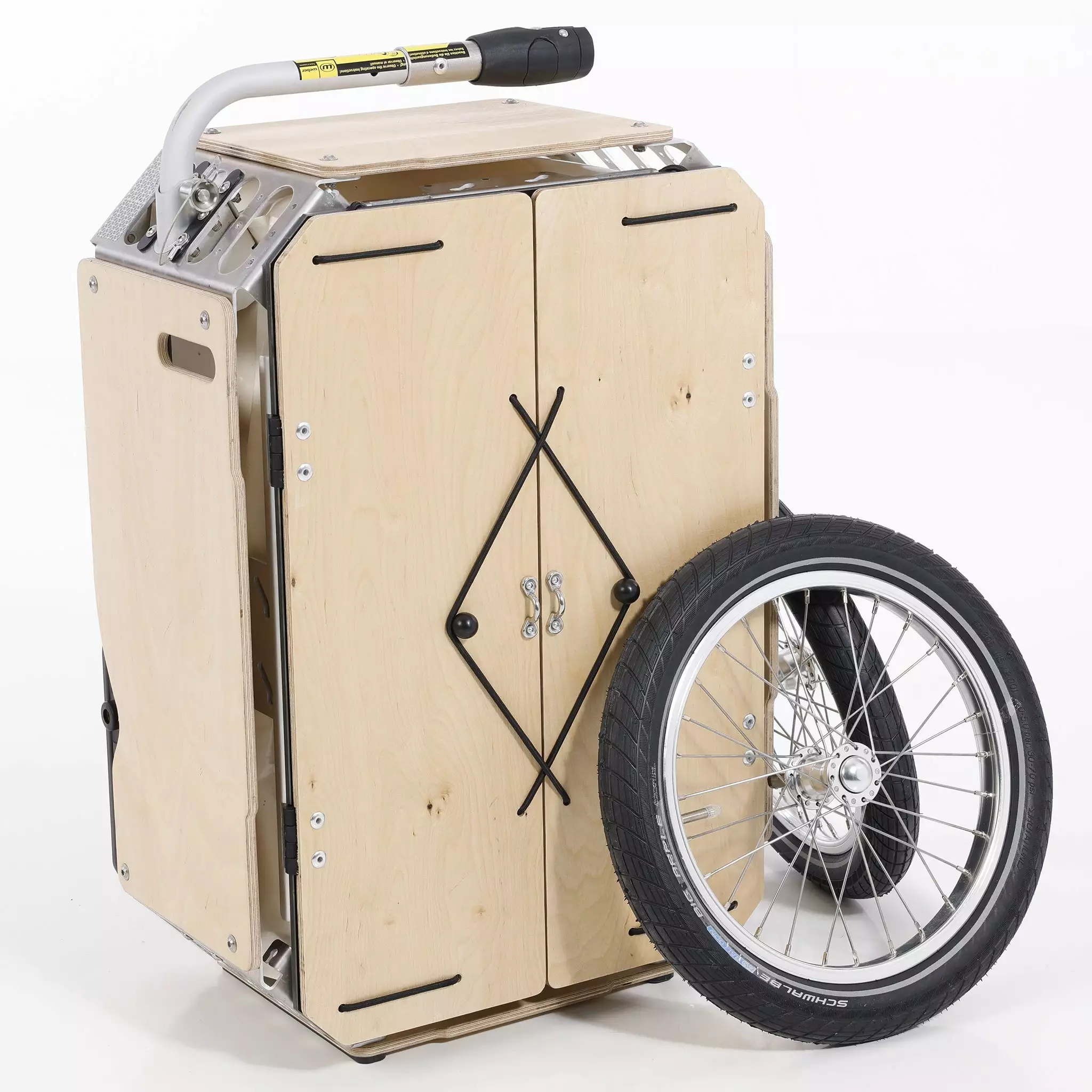 Découvrez la remorque Carette Arca 2306 modulable tantôt en coffre tantôt en table de pique-nique ou stand pour professionnels à vélo.