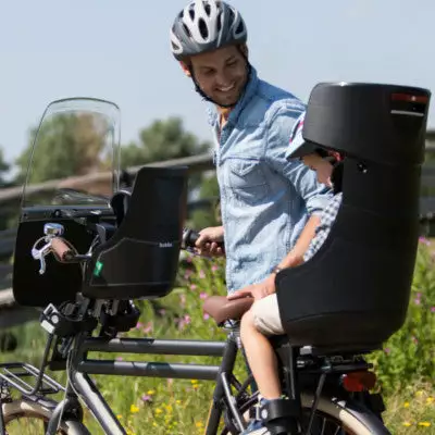 Le siège Exclusive Mini est adapté aux enfants de 9 mois à 3 ans pesant au maximum 15 kg. Sa conception à double paroi prolonge sa durabilité et offre un niveau de sécurité élevé. La poignée de devant autorise l’enfant à se cramponner ou s’y appuyer quand il s’assoupit. La poignée peut également tourner pour donner l’impression à l’enfant de piloter lui aussi le vélo. Un rembourrage déperlant au niveau de l’assise évite à celle-ci d’être trempée.
