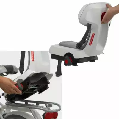 Ce siège pour vélo est de coloris blanc. Le siège vélo Guppy Junior Polisport gris est aussi disponible sur notre site.